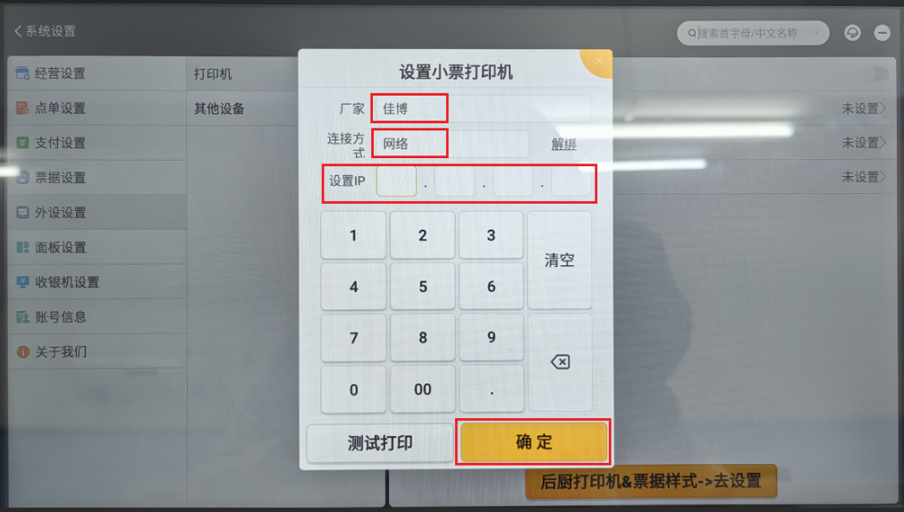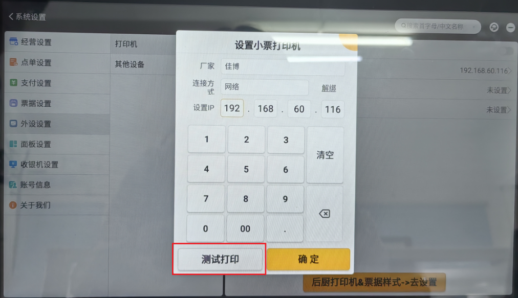 ③通过软件自带的打印测试或者重打历史订单确认打印机与软件已成功连接。